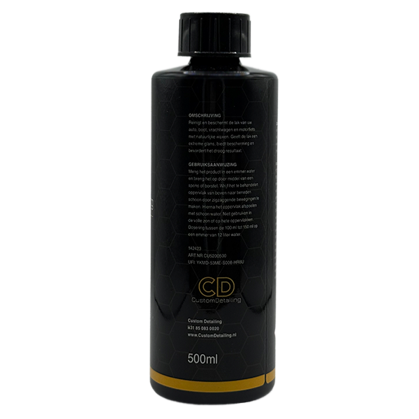 De Custom Detailing Shine combineert krachtige reiniging met een hoogwaardige waxformule voor een diepe, waterafstotende glans. Deze premium shampoo verwijdert vuil, vet en wegfilm zonder de bestaande bescherming aan te tasten — en voegt tegelijk een beschermende, glanzende laag toe.